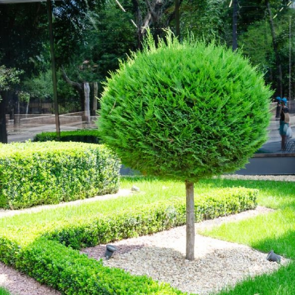 Plantă ornamentală elegantă, formată ca un glob pe tulpină, ideală pentru grădini, terase sau intrări. Frunziș verde intens, decorativ tot timpul anului. Ușor de întreținut și foarte rezistentă.
